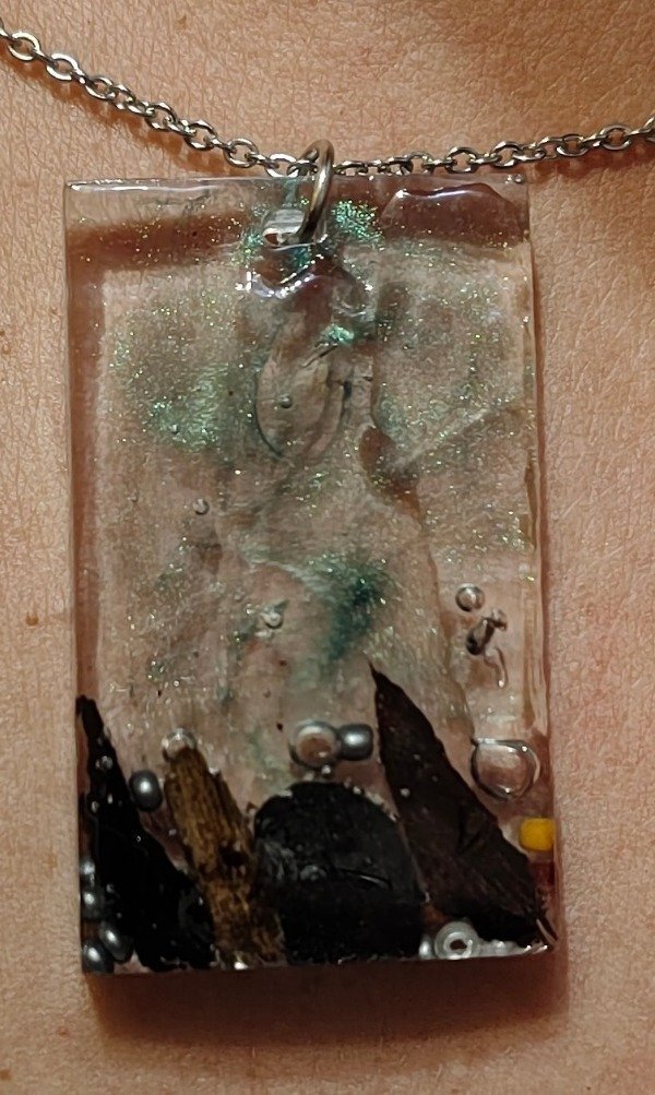 Colgante realizado en resina y madera con detalles únicos. Se entrega en caja de regalo.