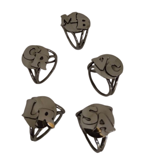 Pasapañuelo con 2 letras imprenta caladas a mano, soldadas con plata, totalmente artesanal.