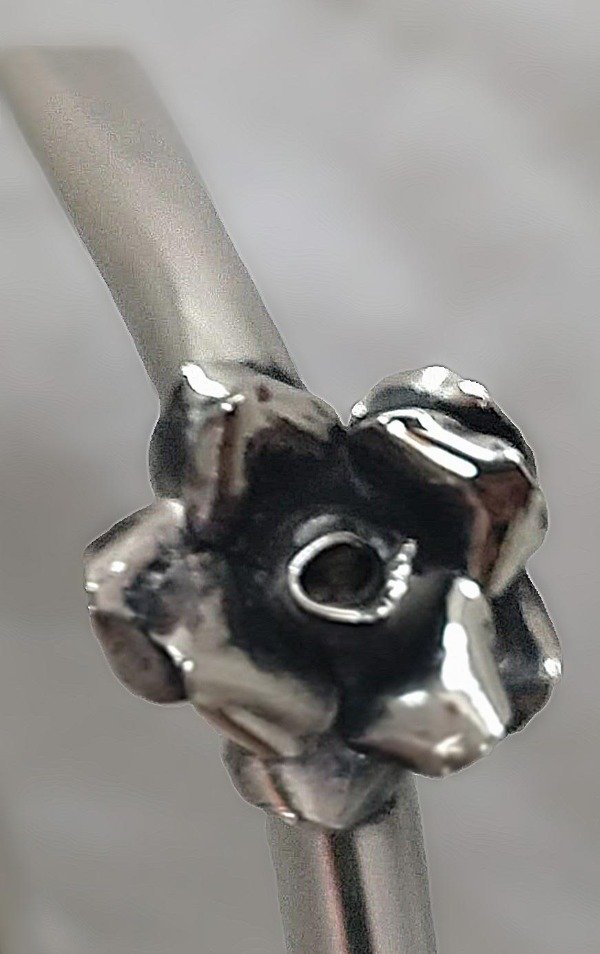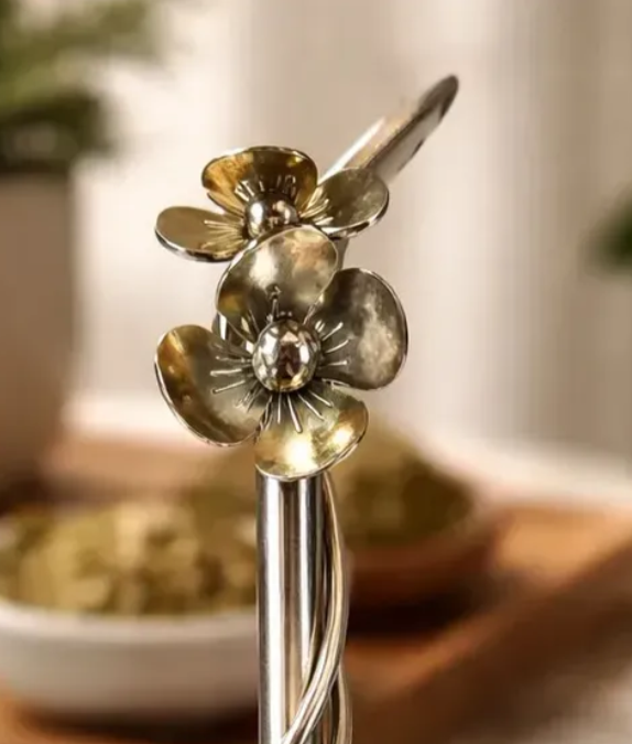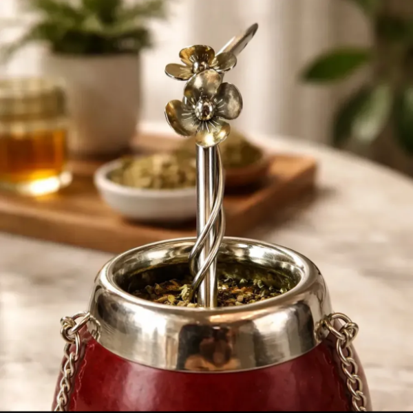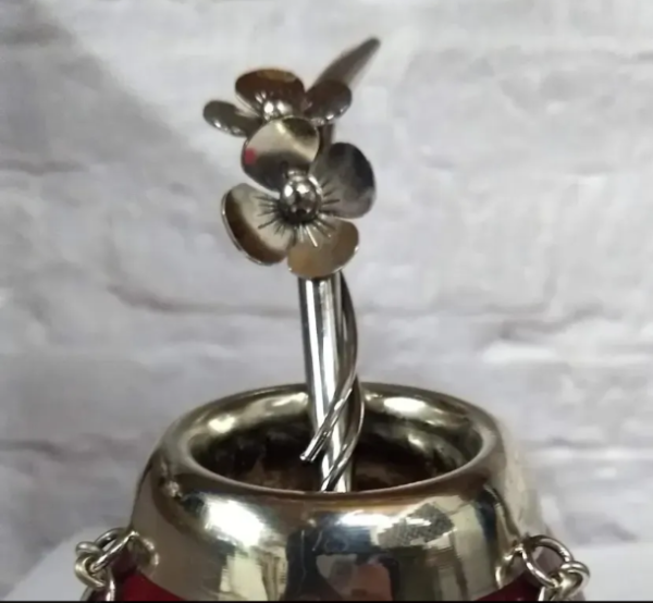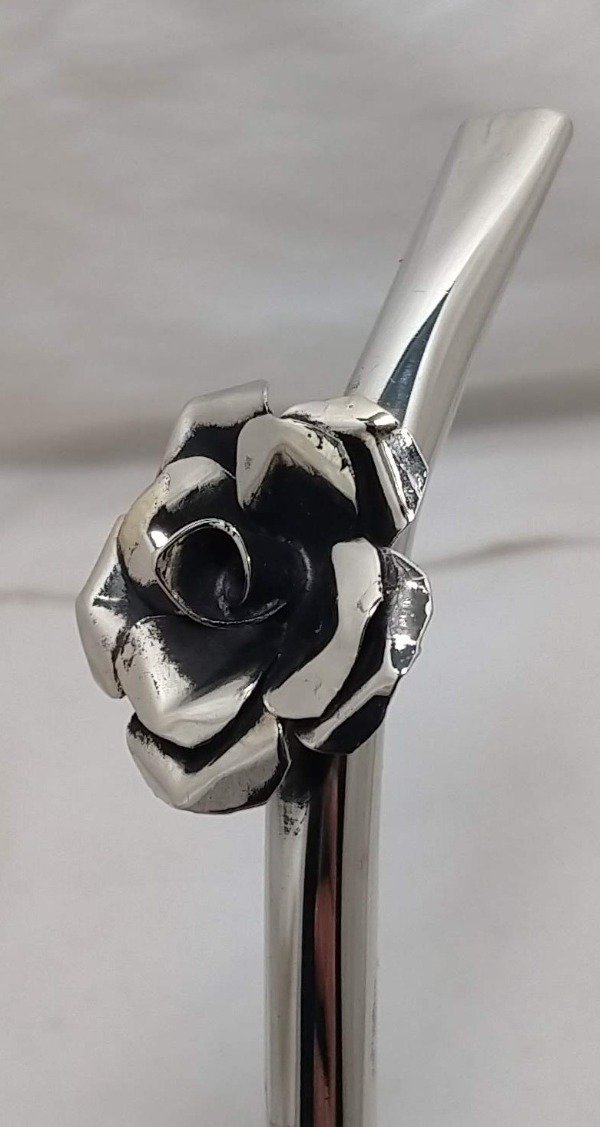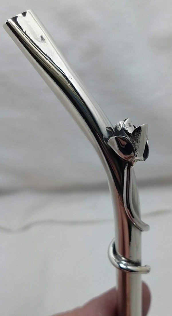 Bombilla pico de loro de alpaca con flor, soldado con plata.