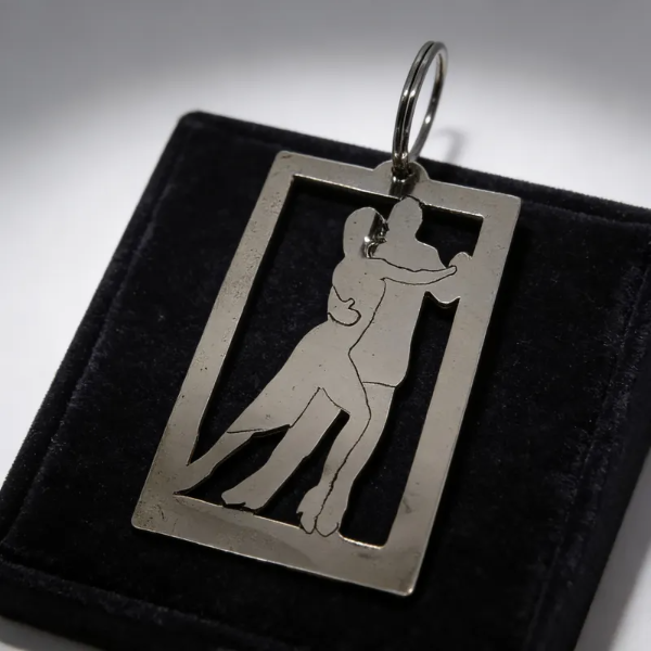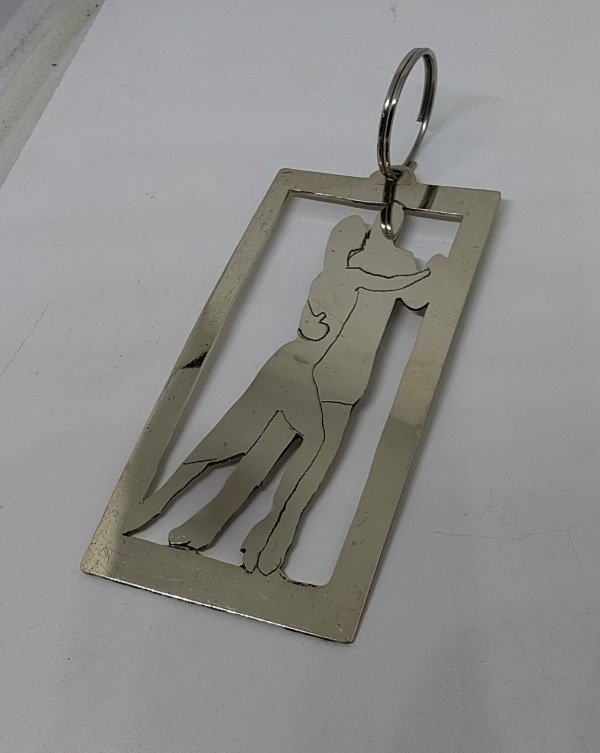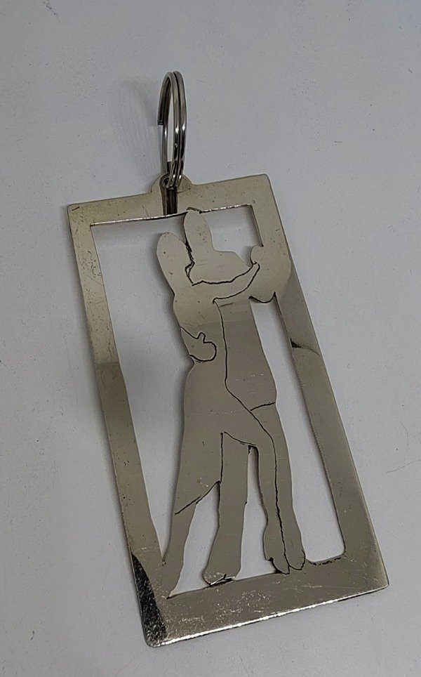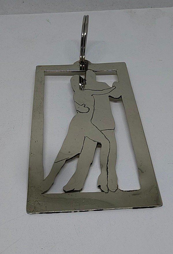 Llavero calado a mano con figura de pareja de tango en alpaca.