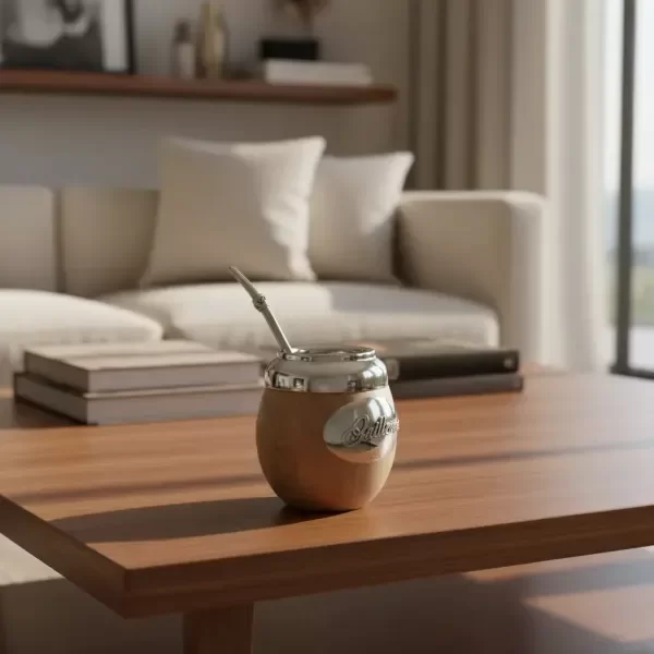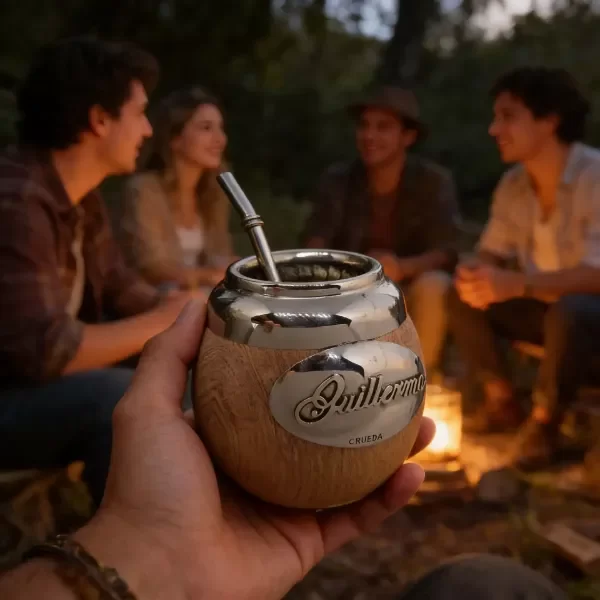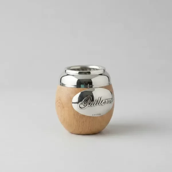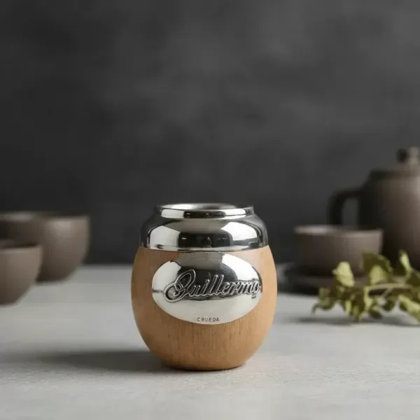 Mate de algarrobo con base y nombre calado a mano. Sin bombilla